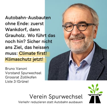 Am 24. November 2024 haben mich die Stimmberechtigten der Gemeinde Zollikofen in den Grossen Gemeinderat (GGR) wiedergewählt. Die GRÜNE Freie Liste (GFL) konnte ihre 7 Sitze im 40-köpfigen Gemeindeparlament verteidigen und auch ihr Gemeinderat Edi Westphale wurde klar wiedergewählt. Freude herrschte am Wahlabend und darüber hinaus, weil am gleichen Wochenende der Ausbau der nahen Grauholzautobahn und der weiteren Ausbauprojekte abgelehnt wurde - schweizweit und auch kommunal! Dafür habe ich mich noch mehr eingesetzt als für meine Wiederwahl... Herzlichen Dank für alle Unterstützung!