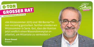 Das Gebot der Stunde heisst für mich: Klimaschutz. Dafür habe ich nach dem Hitzesommer persönliche Vorstösse im Grossen Rat eingereicht. Zu meinen ökologischen Schwerpunkten gehören die Förderung von Solarstrom (auch durch angemessene BKW-Tarife) und Elektromobilität (mit Strom aus erneuerbaren Quellen!), der Einsatz für Bio-Landwirtschaft, Bio-Gartenbau und Biodiversität.